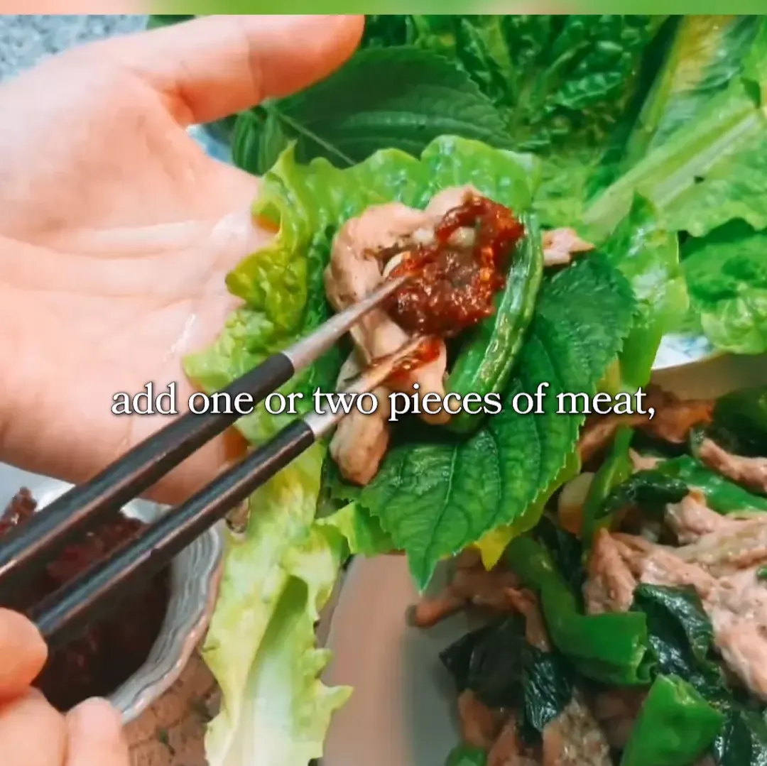 Start with a fresh lettuce leaf: Use green leaf lettuce or perilla leaves for the best results. These leafy greens add a refreshing contrast to the rich flavors of meat and ssamjang.