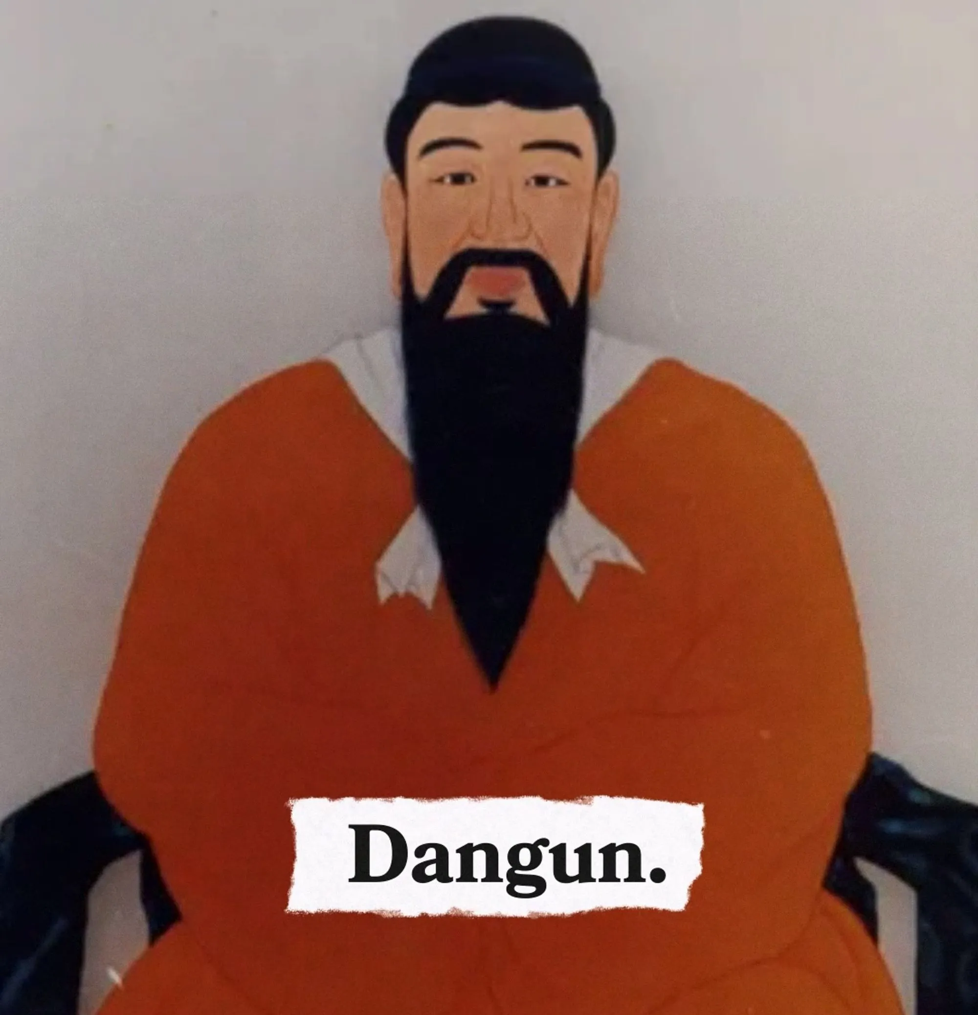 The bear-turned-human married the god and had a son, Dangun, who is considered the ancestor of Koreans. Thus, the joke is that Koreans started as a people of garlic from the very beginning with Dangun.