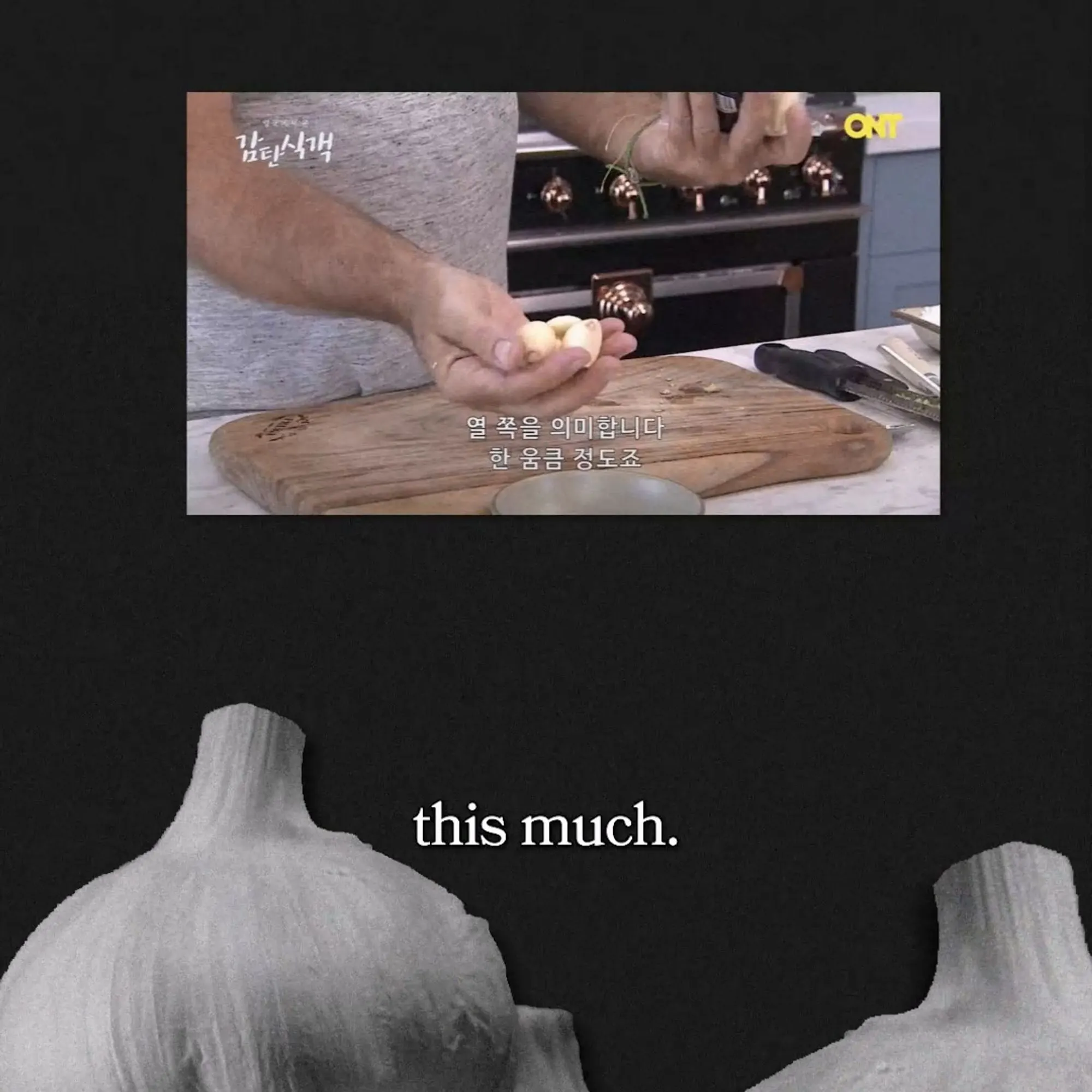 He even showed a handful of garlic, explaining that what Koreans consider "a little" is actually quite a lot.