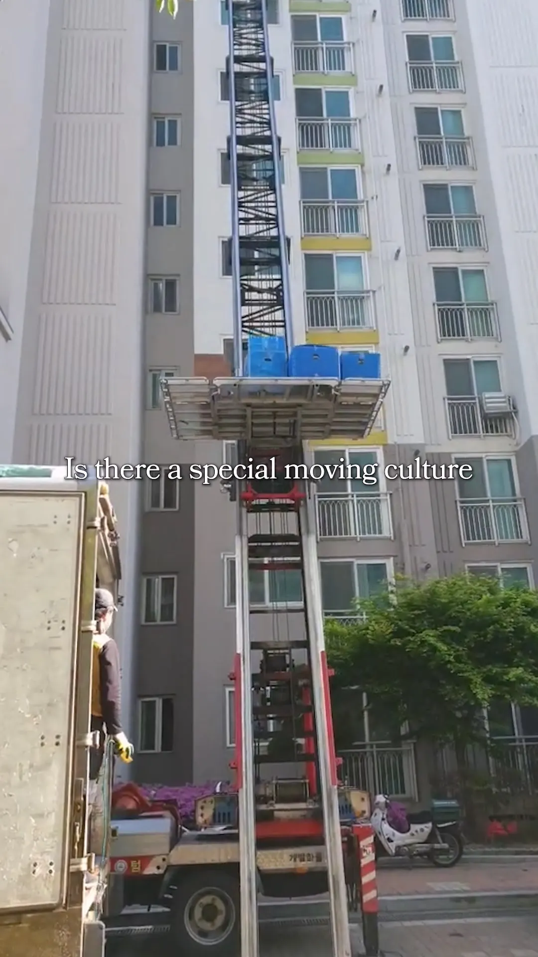 Koreans, known for their intolerance of slowness and high emphasis on efficiency, adopted ladder trucks, originally special construction equipment, for moving purposes.