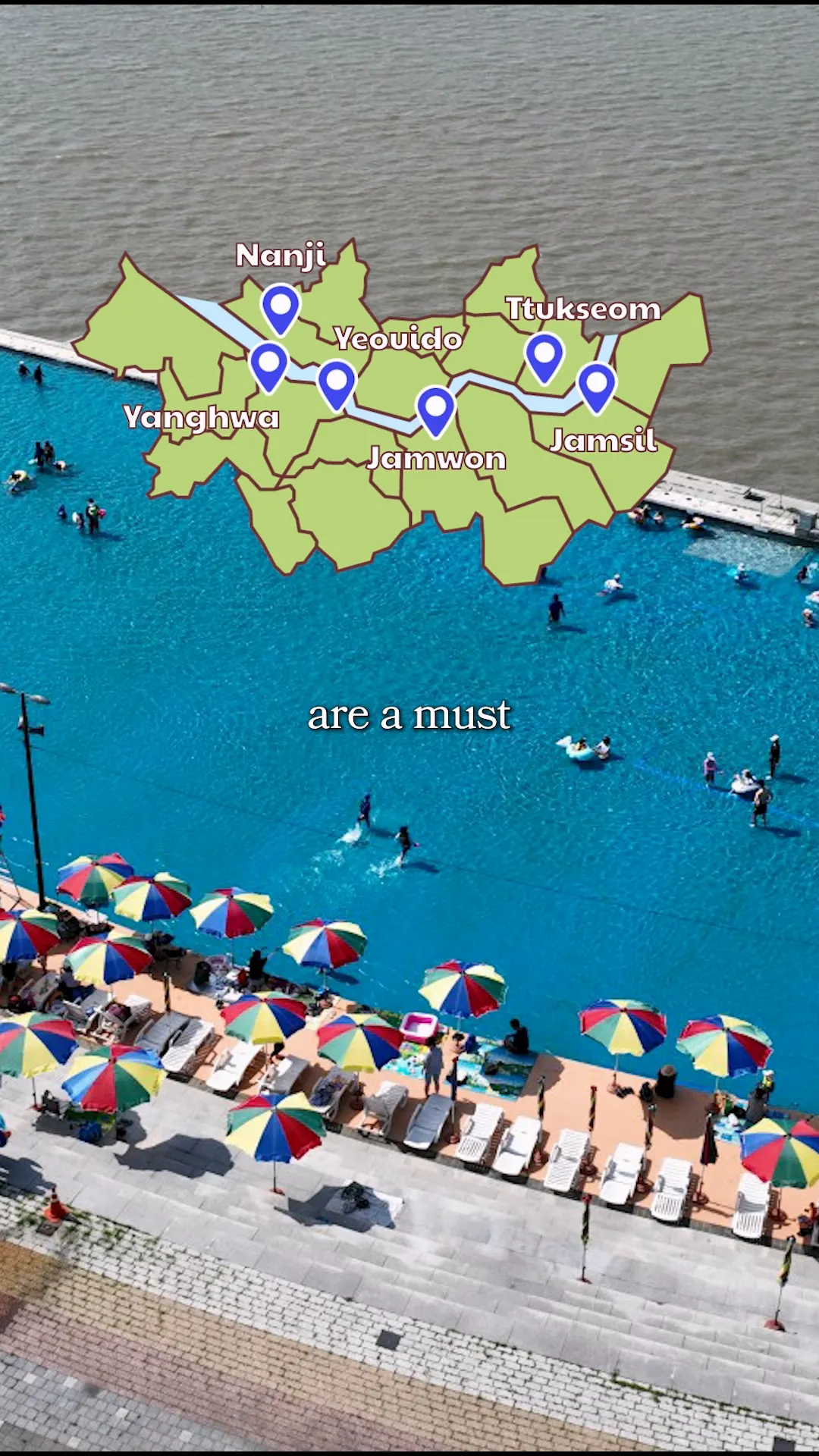 Keywords: Han River, Seoul, outdoor swimming pools, summer activities, Han River parks, affordable admission, family-friendly, Ttukseom, Yeouido, Jamwon, Jamsil, Yanghwa, Nanji, sunbeds, swimming caps, swimsuits, Seoul travel, urban fun, summer heat escape, picturesque views.